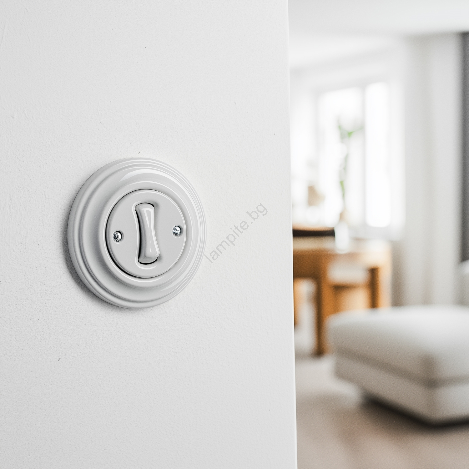 • Kliklap - Ретро бял керамичен стълбищен ключ с рамка № 6