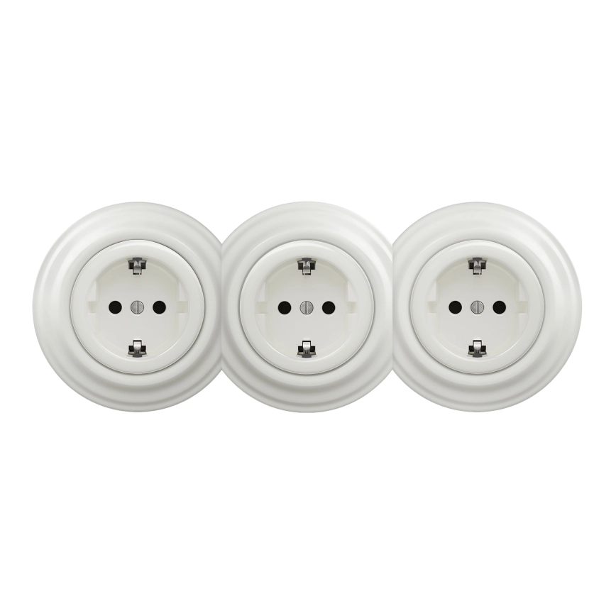 Kliklap - Тройна ретро битова стенна розетка с рамка SCHUKO 230V бяла