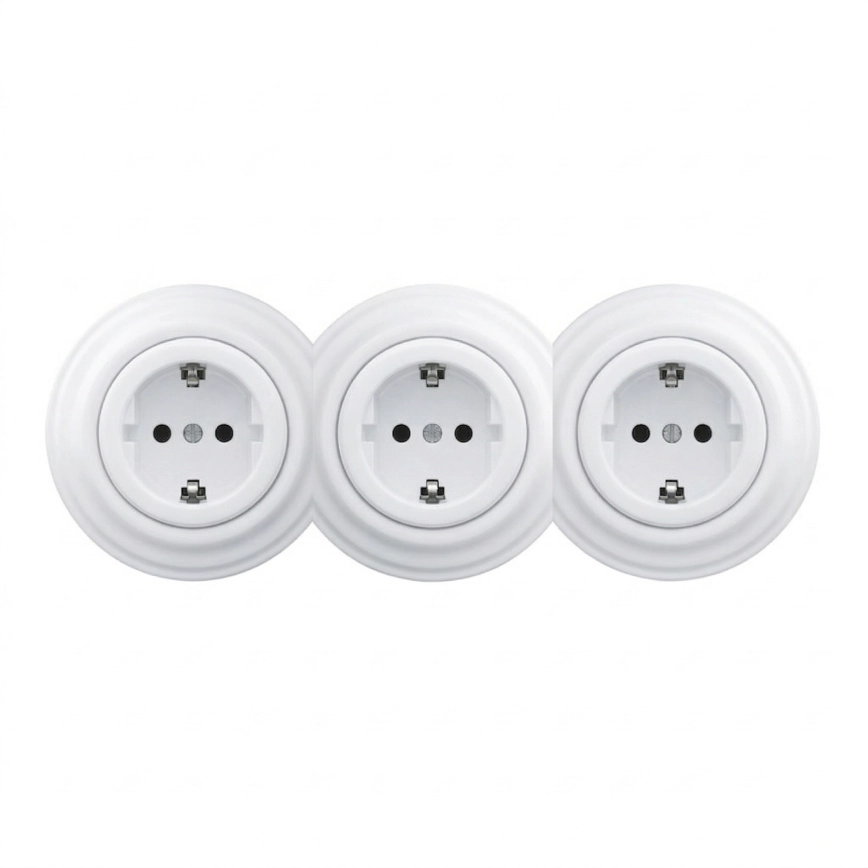 • Kliklap - Тройна ретро домашна розетка с рамка SCHUKO 230V, керамична, бяла
