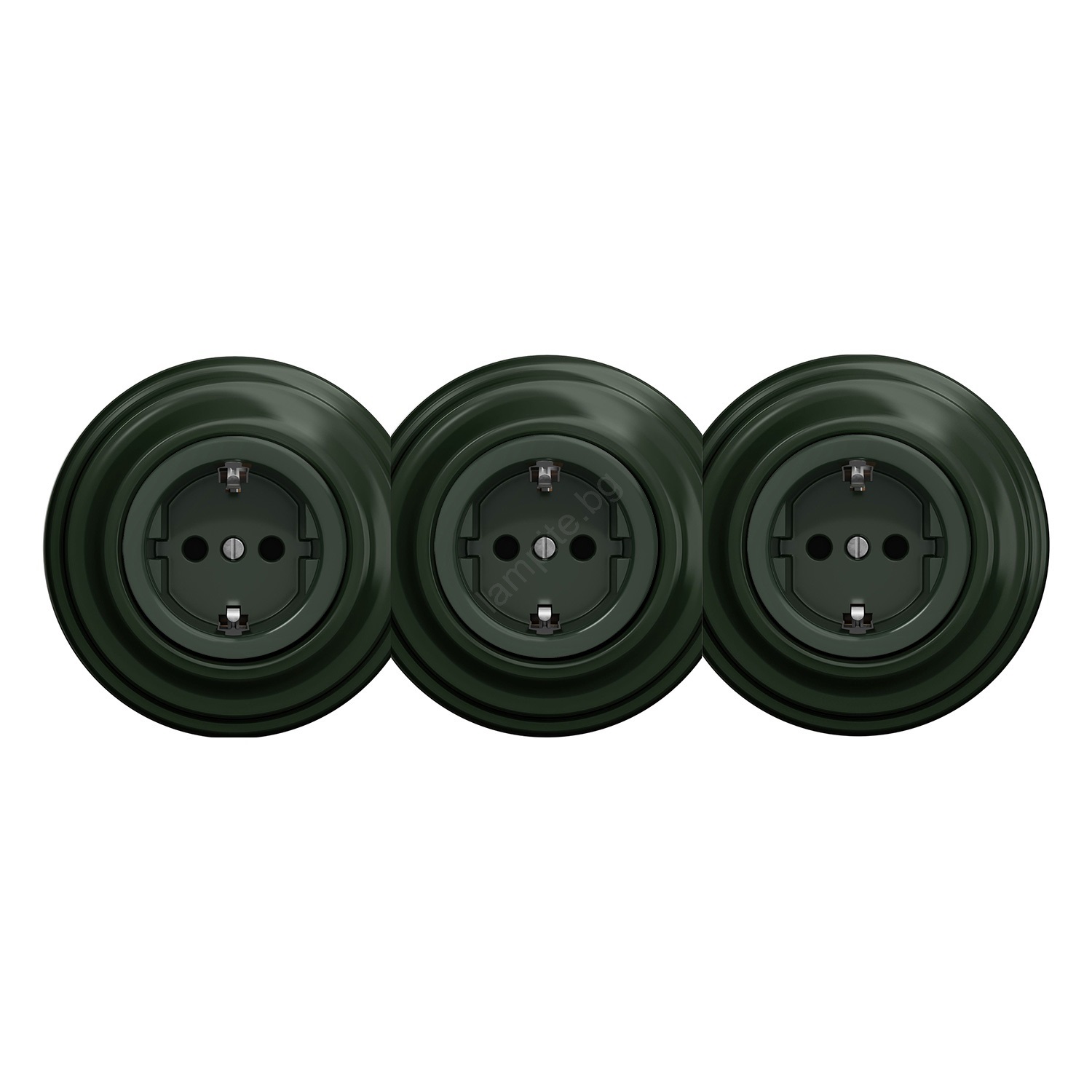 Kliklap - Тройна ретро розетка за дома с рамка SCHUKO 230 V, зелена