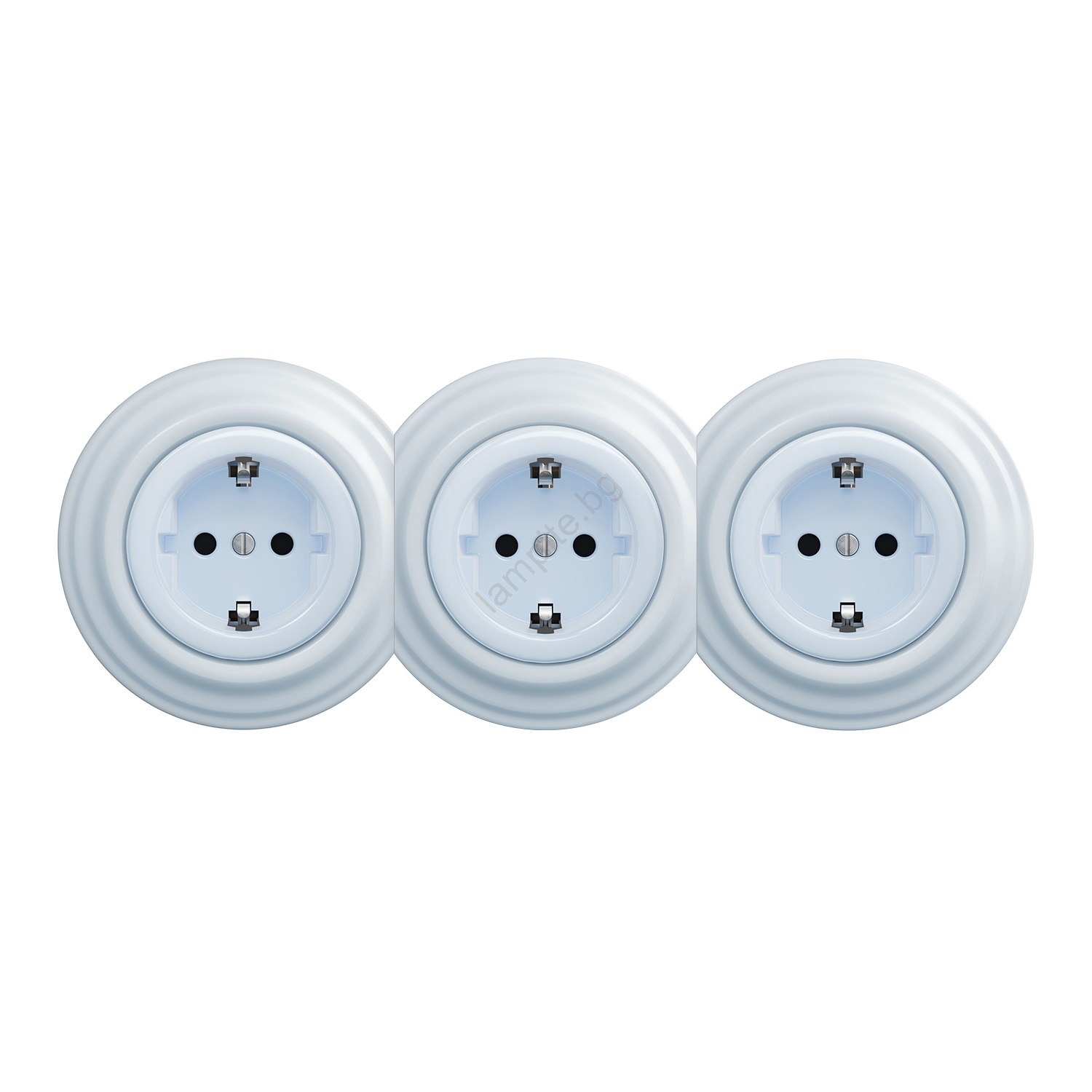 Kliklap - Тройна ретро домашна розетка с рамка SCHUKO 230V синя