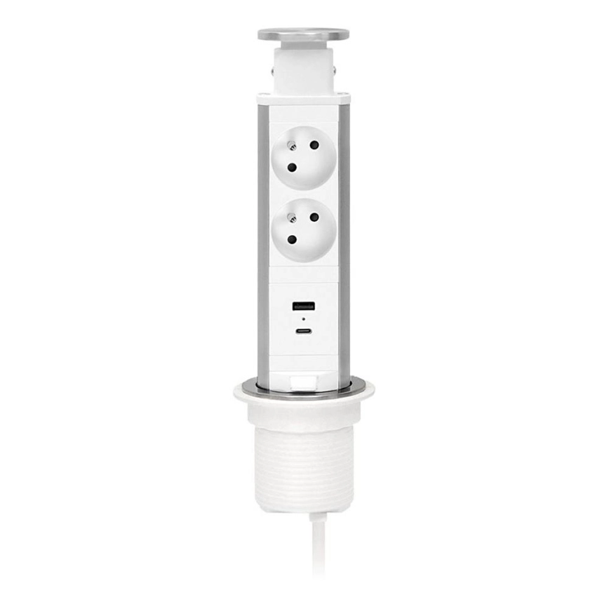 Захранващ стълб за монтаж върху плот на бюро — 2 x 230 V + USB-A + USB-C