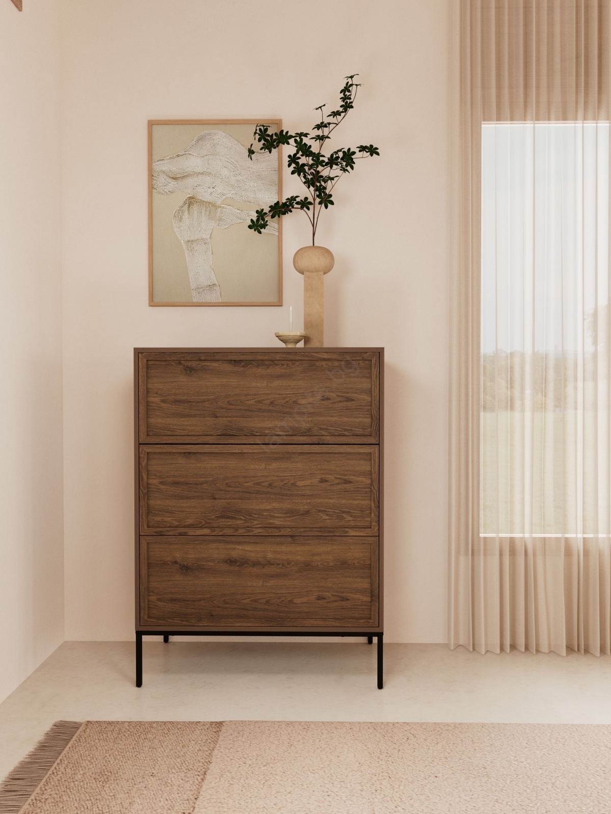 • С 3 чекмеджета оптимизира използването на пространството и дискретно прибира вещите ви извън погледа.
