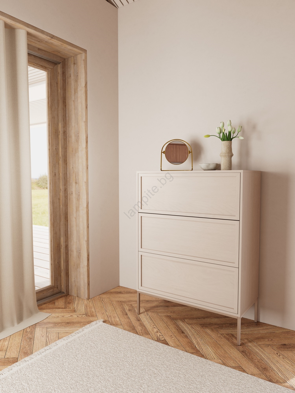 • Благодарение на 3 чекмеджета оптимално използва пространството и дискретно прибира вещите ви извън полезрението.