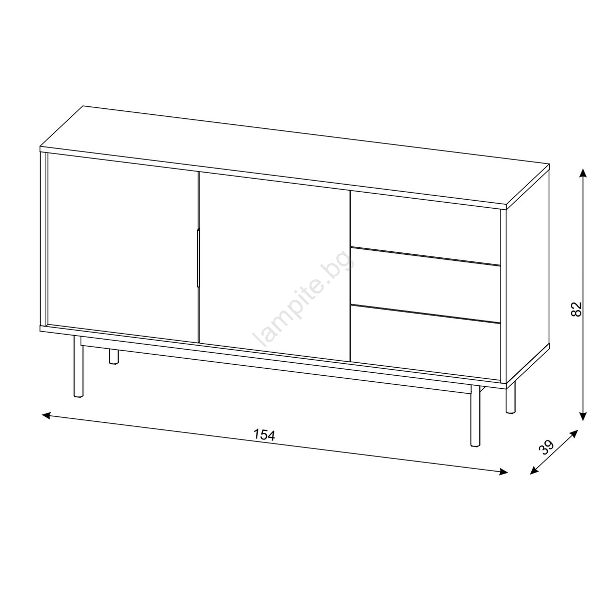 • Разполага с две врати отляво и три чекмеджета отдясно за подредено съхранение на вещи.