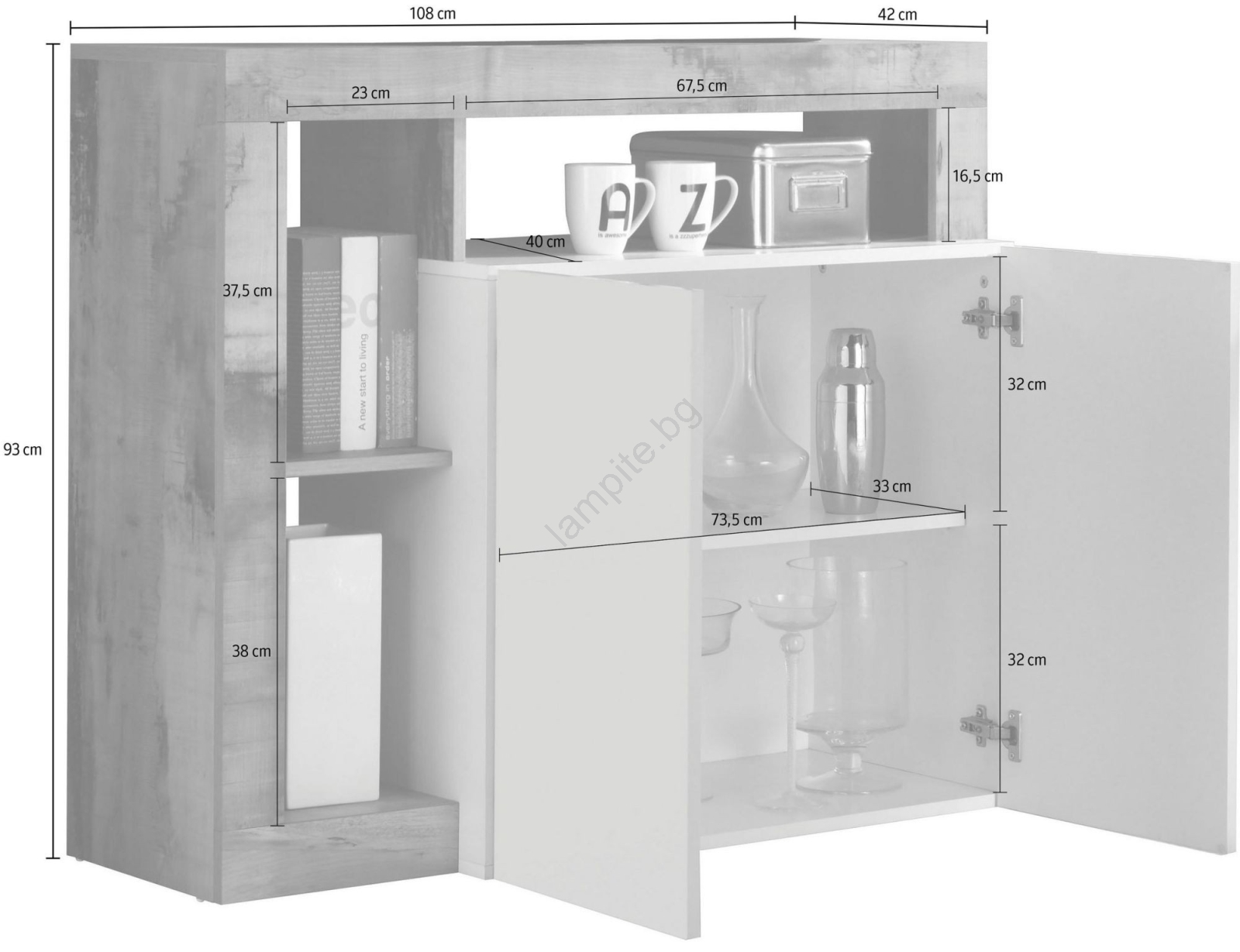 • Благодарение на шкафчетата предлага щедро място за съхранение, идеално за организиране на вещи за всекидневна употреба.