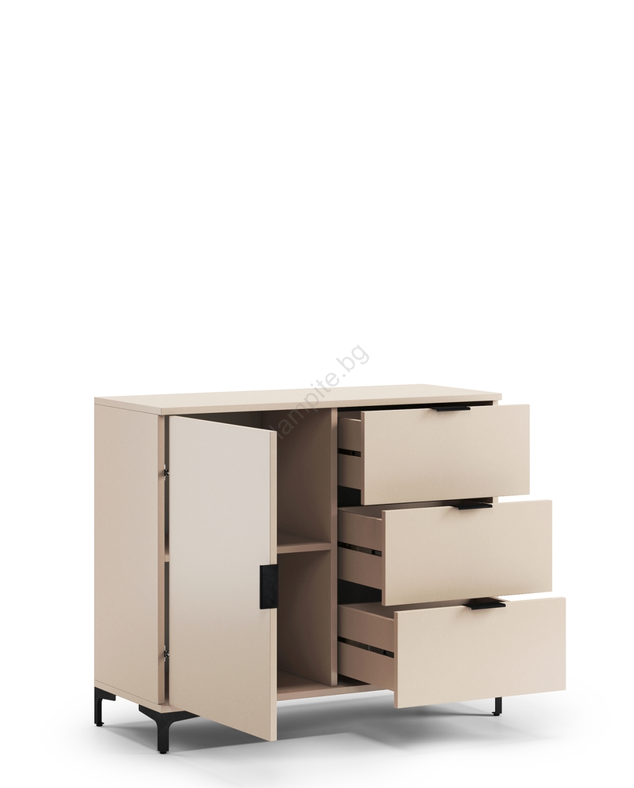 • Мебелът е изработен в лофт стил и се отличава с метални крака и дръжки, които му придават допълнително индустриално излъчване.