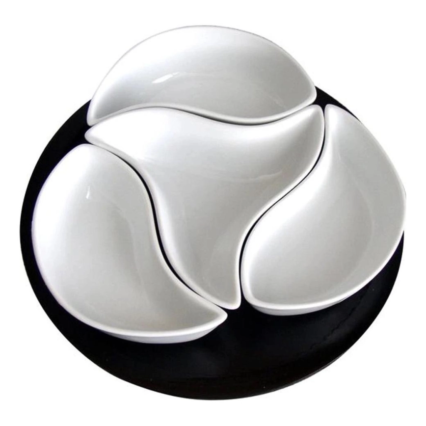 Комплект купички с поднос TORO, 4 бр., керамика/дърво