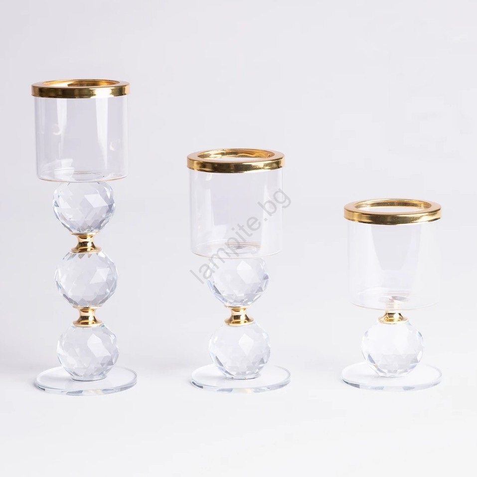 Комплект от 3 свещника, златист/прозрачен