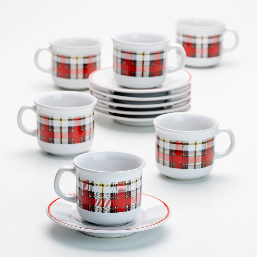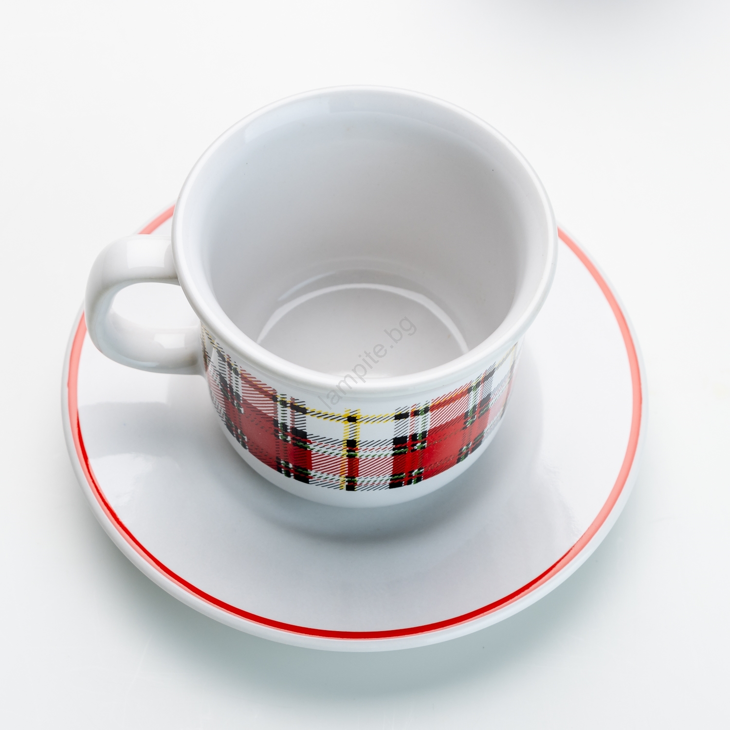 Комплект за кафе 6x керамична чаша с чинийка кариран