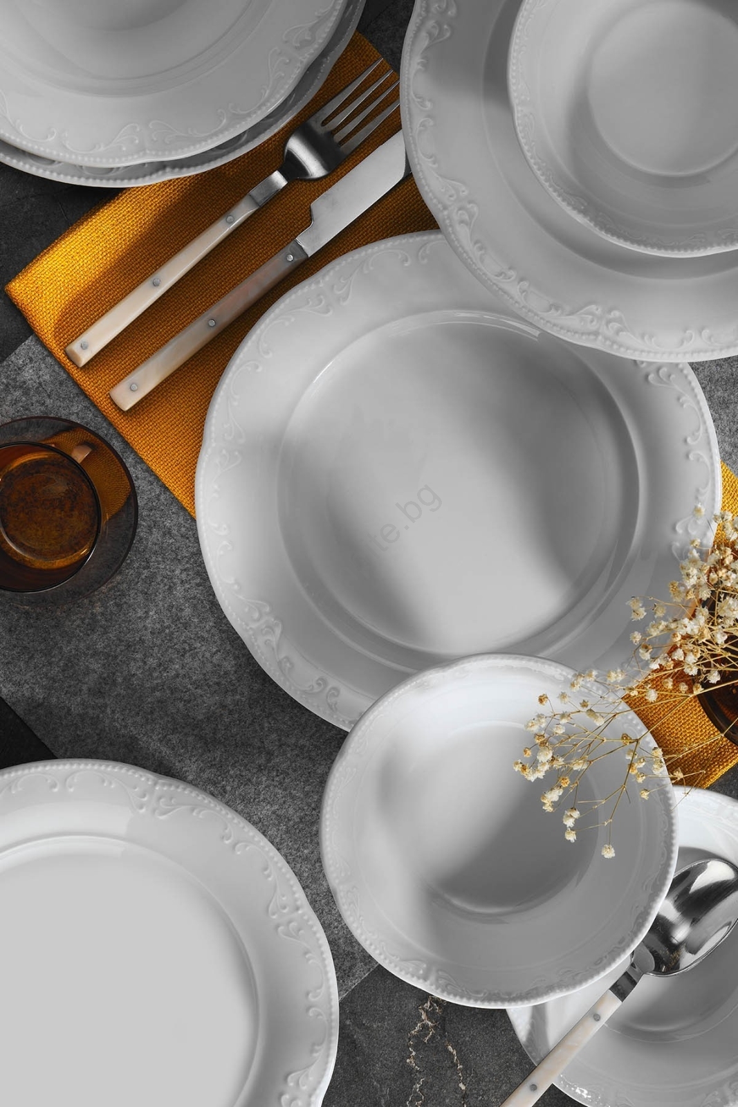 • Елегантен комплект съдове за хранене, подходящ както за ежедневно сервиране, така и за специални поводи.
