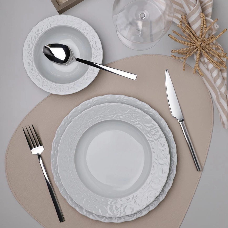 Комплект за хранене, 18 части, бял/порцелан