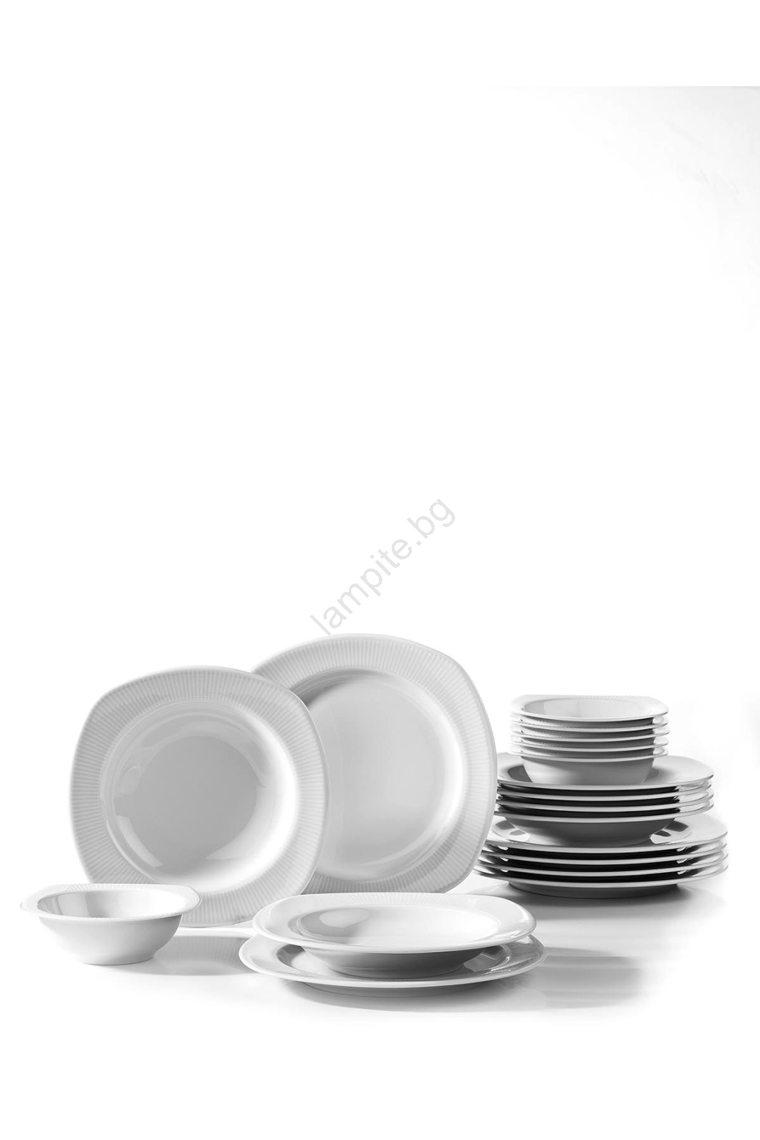• Елегантен комплект съдове за хранене, подходящ както за ежедневно сервиране, така и за празнични поводи.