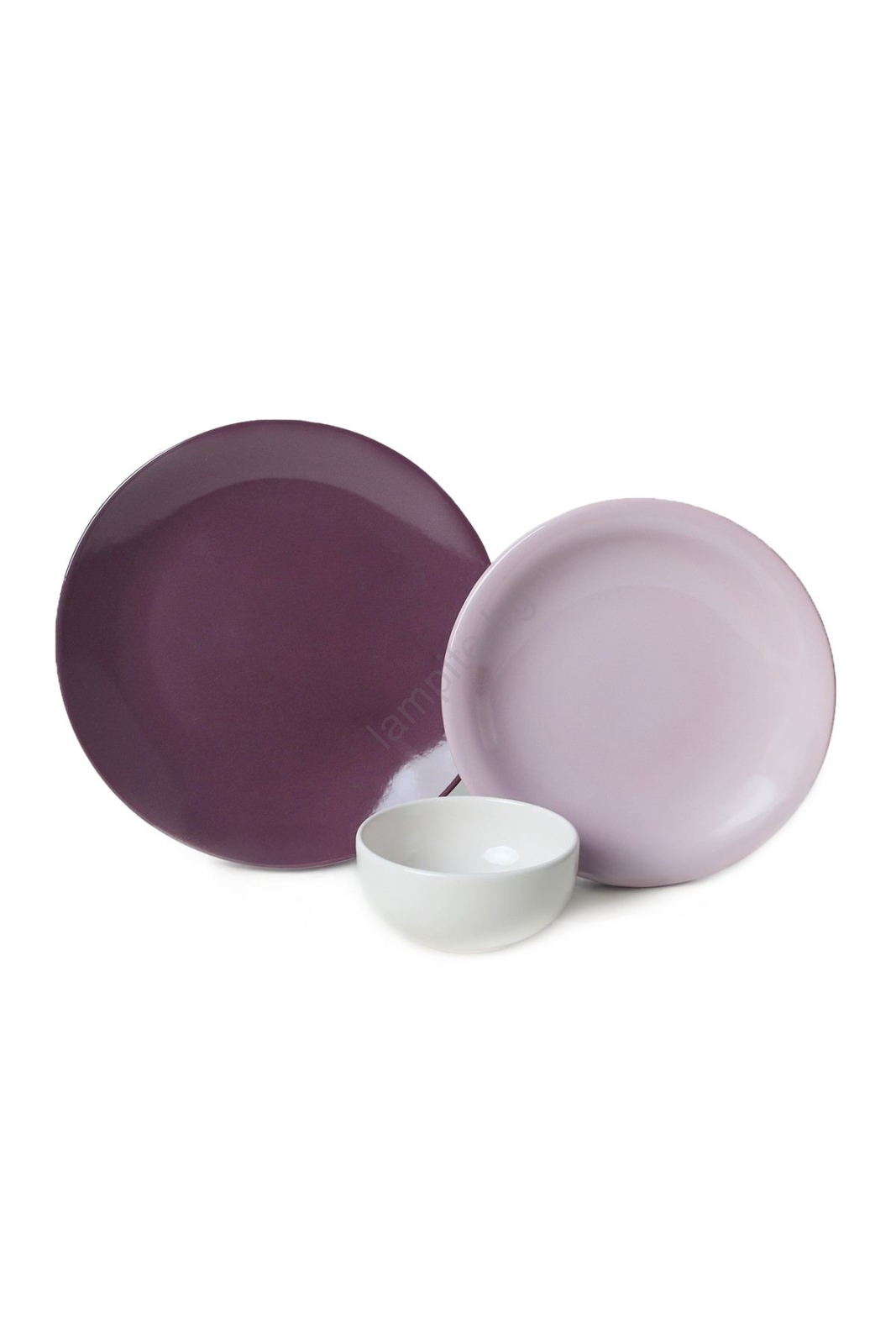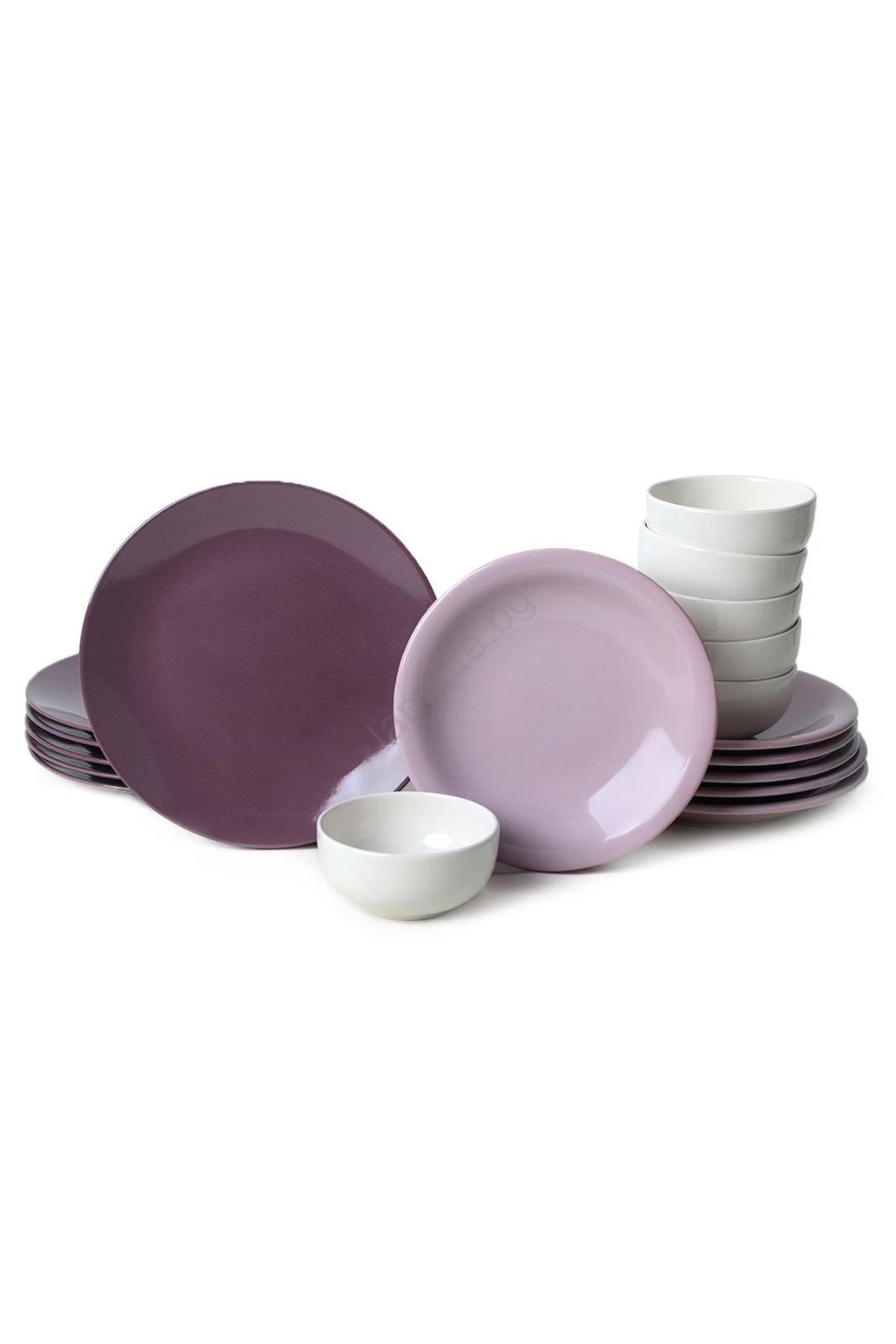 Комплект за хранене, 18 части, лилаво/бяло, керамика