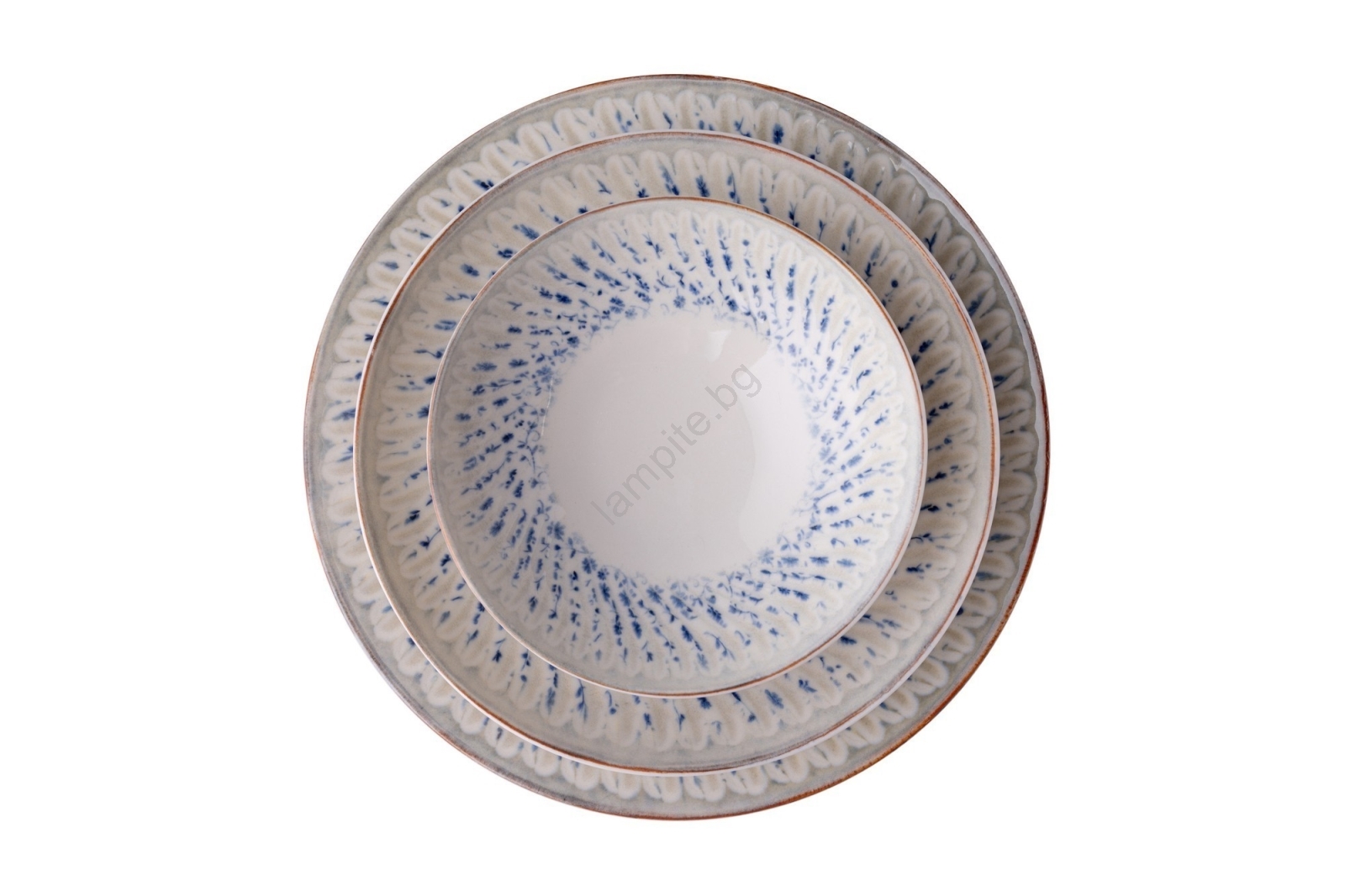 Комплект за хранене 24 бр. син/бежов/порцелан