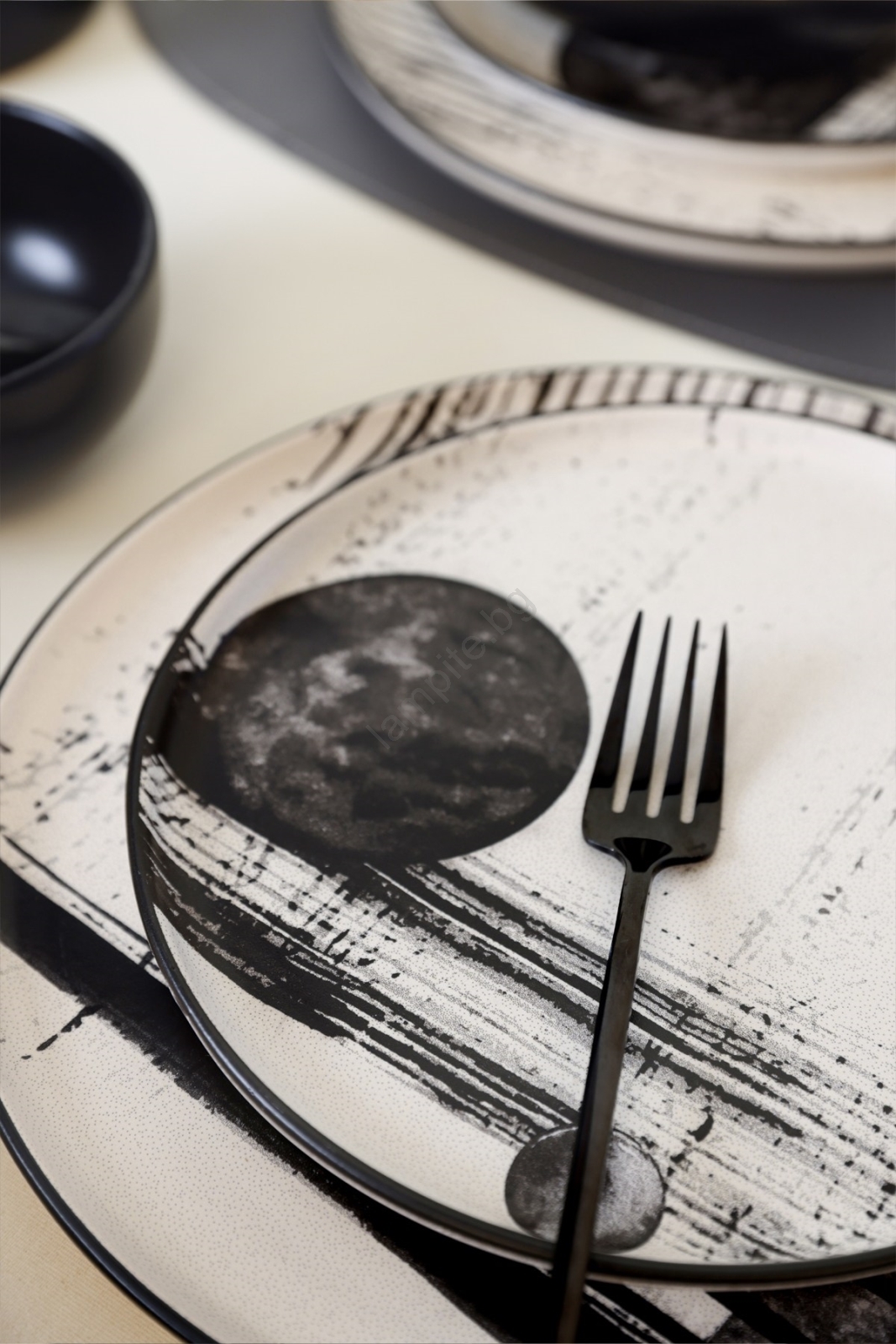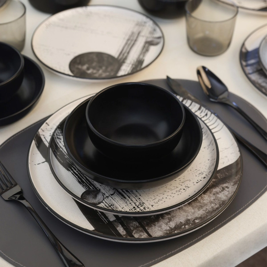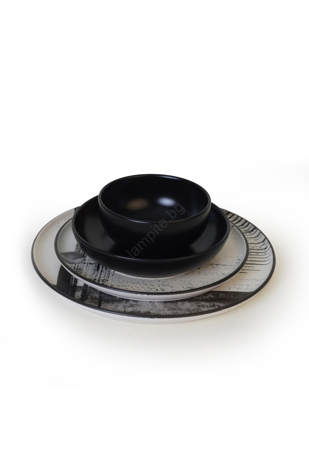 Комплект за хранене 24 части бял/черен/каменна керамика