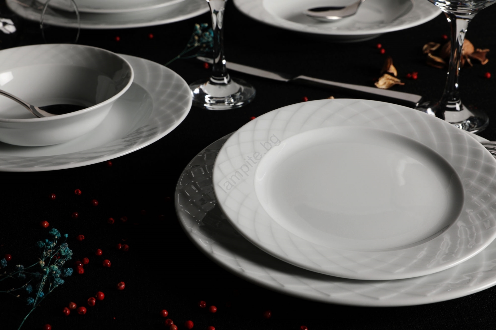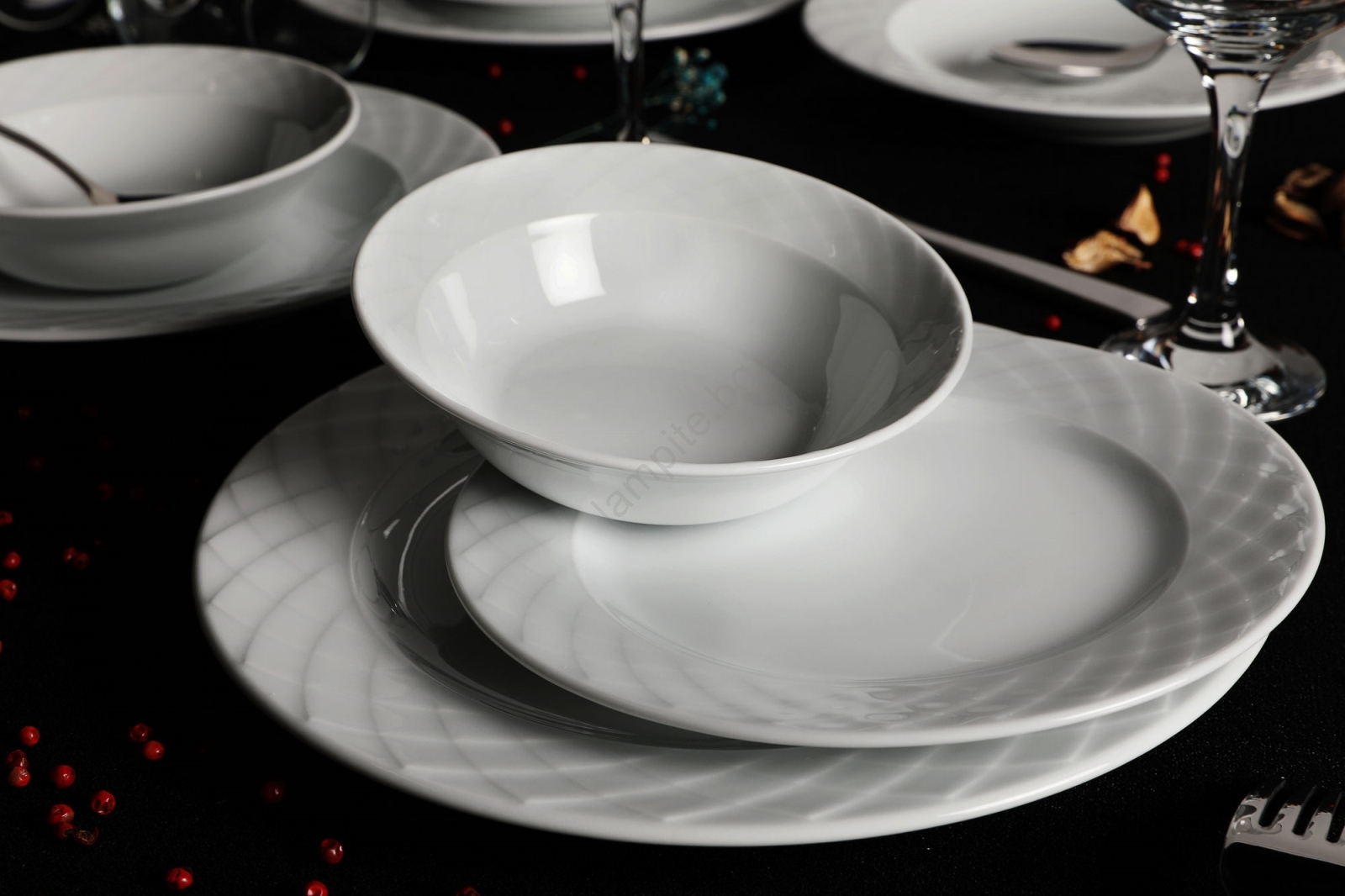 • Елегантен комплект съдове за хранене, предназначен за ежедневно сервиране и за тържествени случаи.