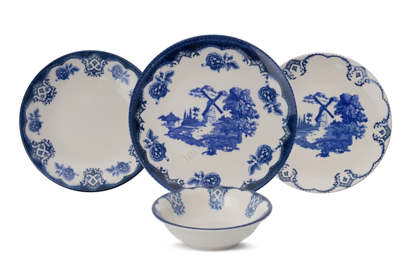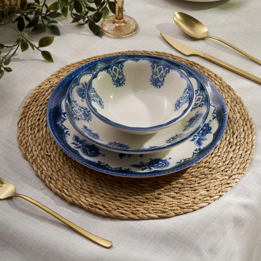 Комплект за хранене, 24 части, синьо/бяло, порцелан