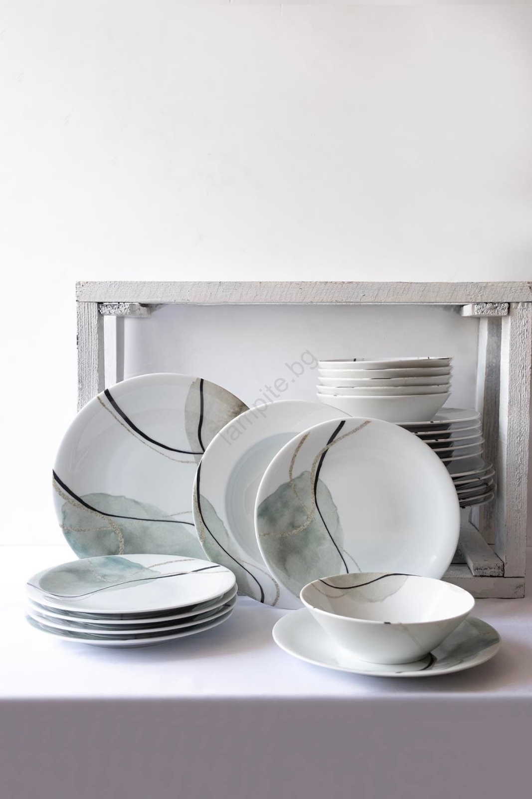 Комплект за хранене 24 части сив/зелен/порцелан