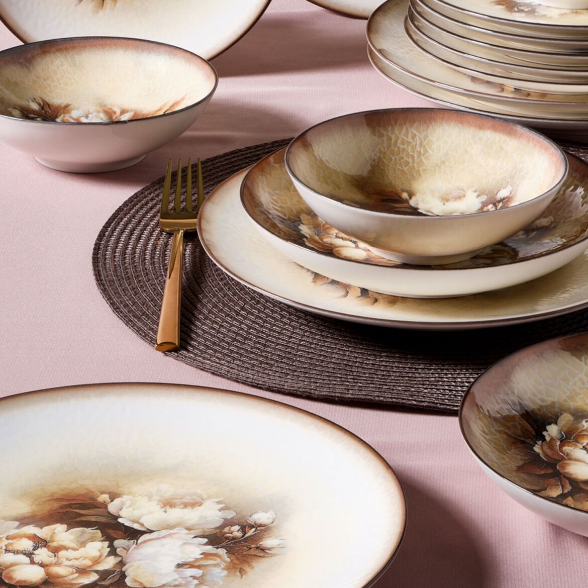 Комплект за хранене 26 части бежов/кафяв/бял/порцелан