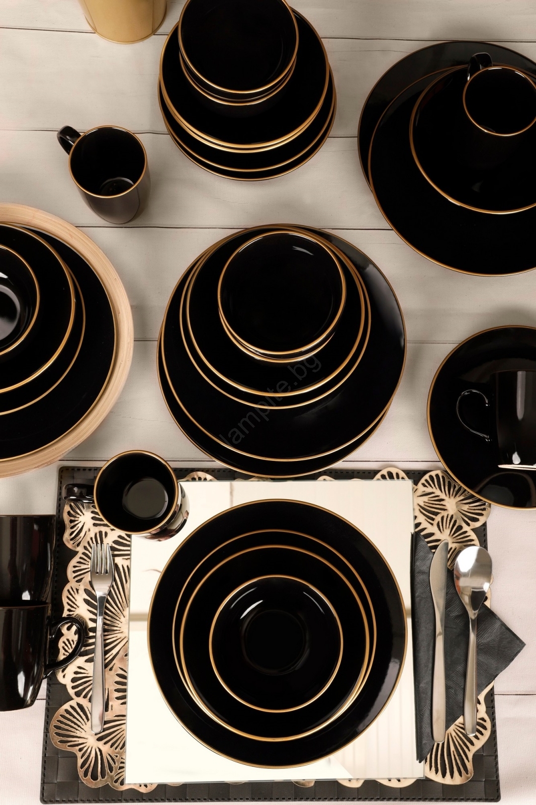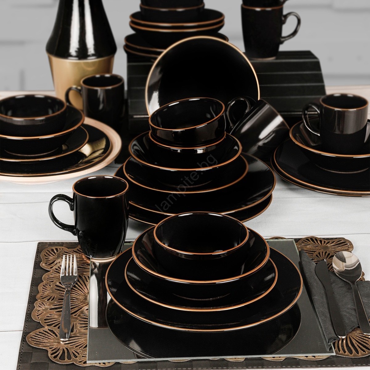 Комплект за хранене 30 бр. черен/златен/керамика