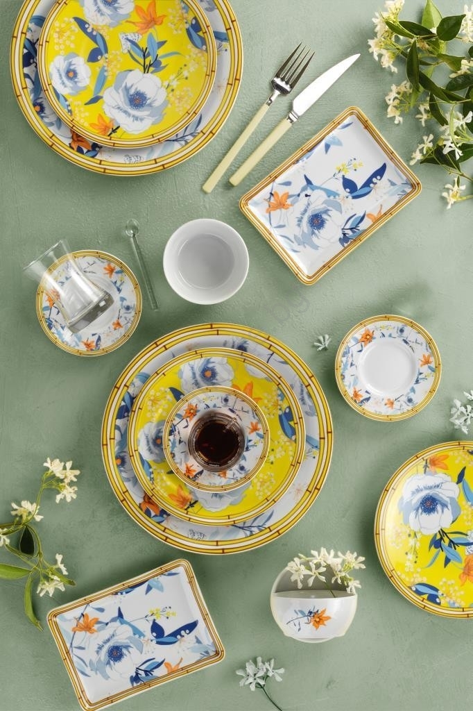 Комплект за хранене, 50 части — порцелан, жълто/синьо