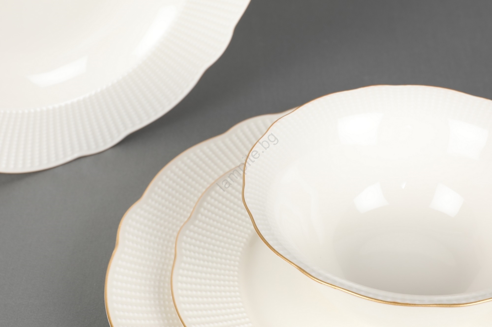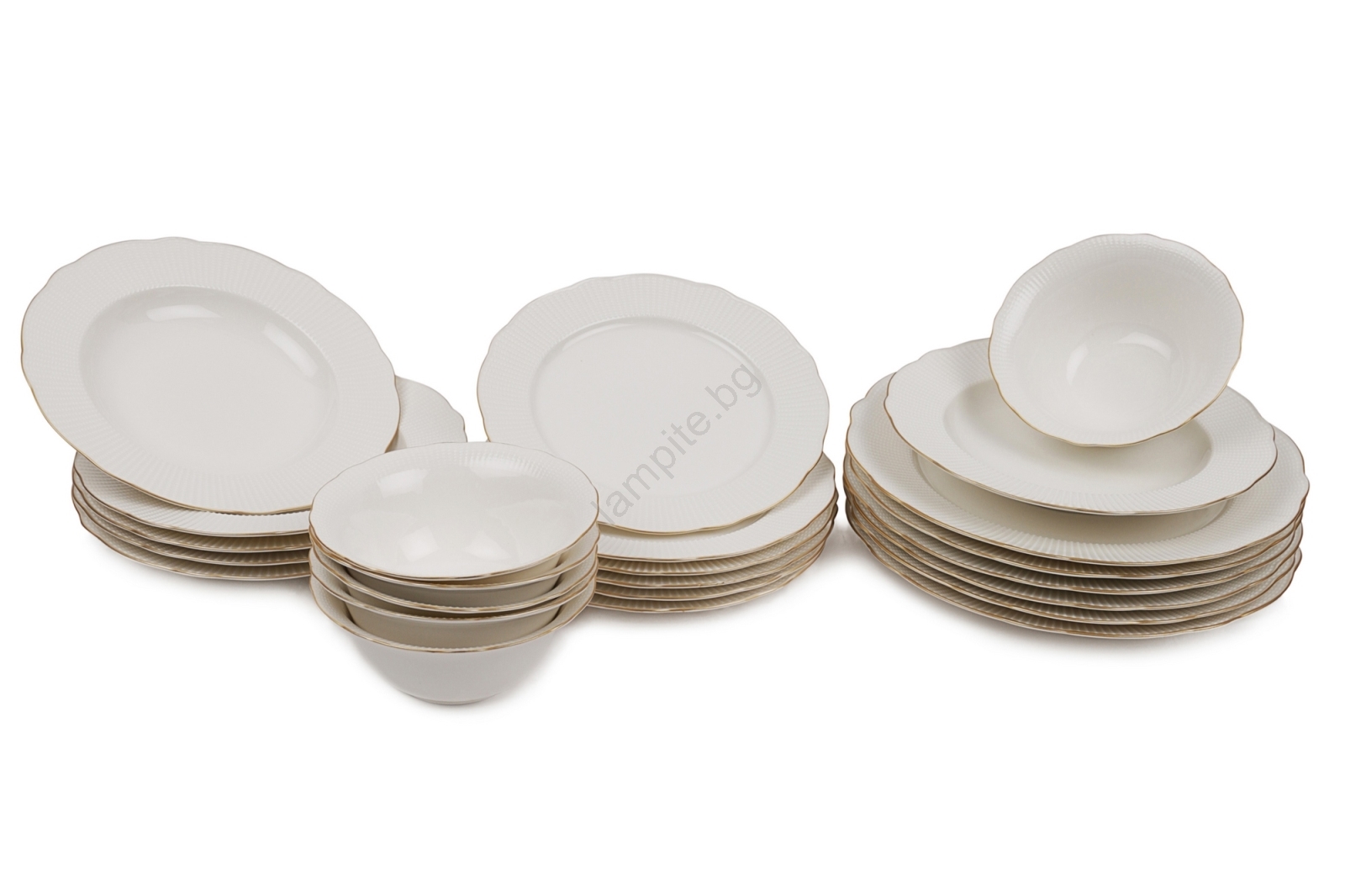Комплект за хранене от 24 части — бял порцелан със златни акценти