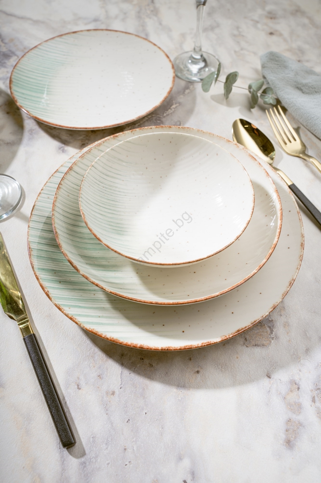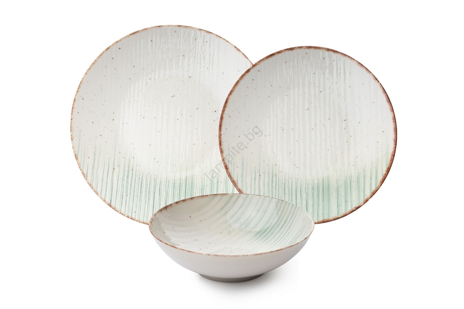 Комплект за хранене от 24 части — бял/зелен, порцелан