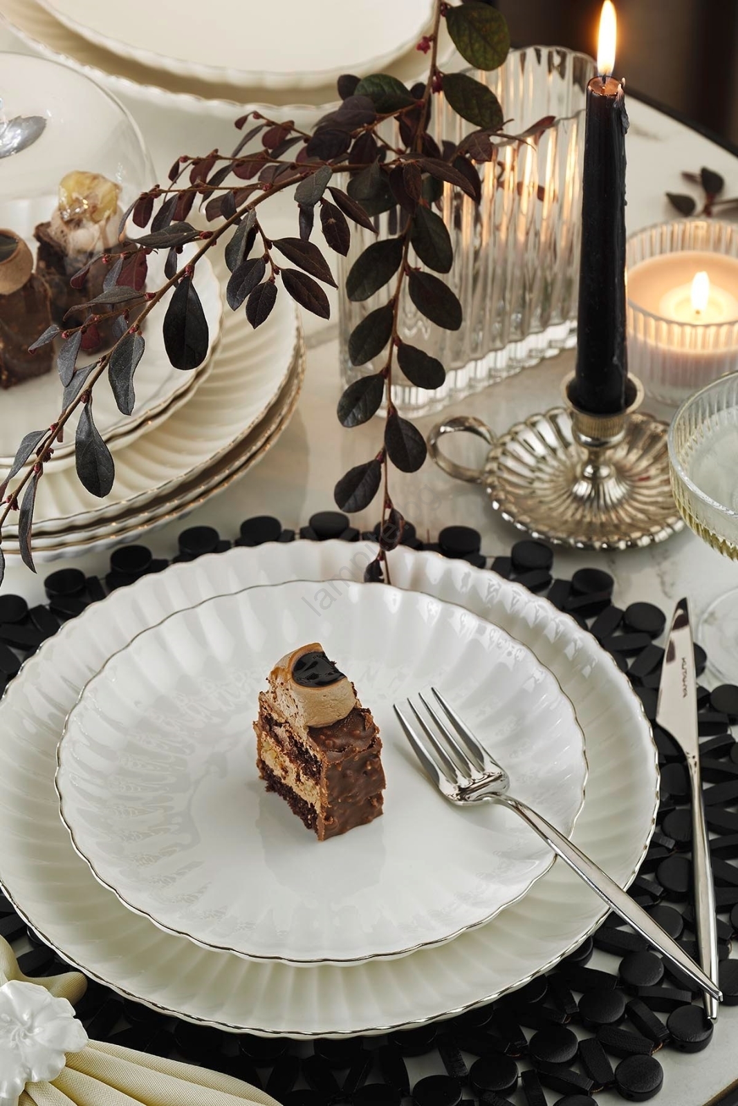 • Елегантен комплект съдове за хранене, подходящ за ежедневни трапези и за празнични поводи.