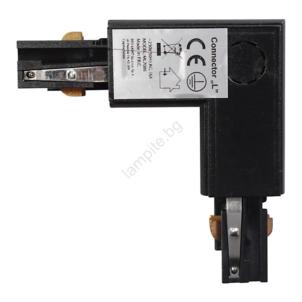 Конектор за осветителни тела в трифазна шина TRACK, черен, тип L