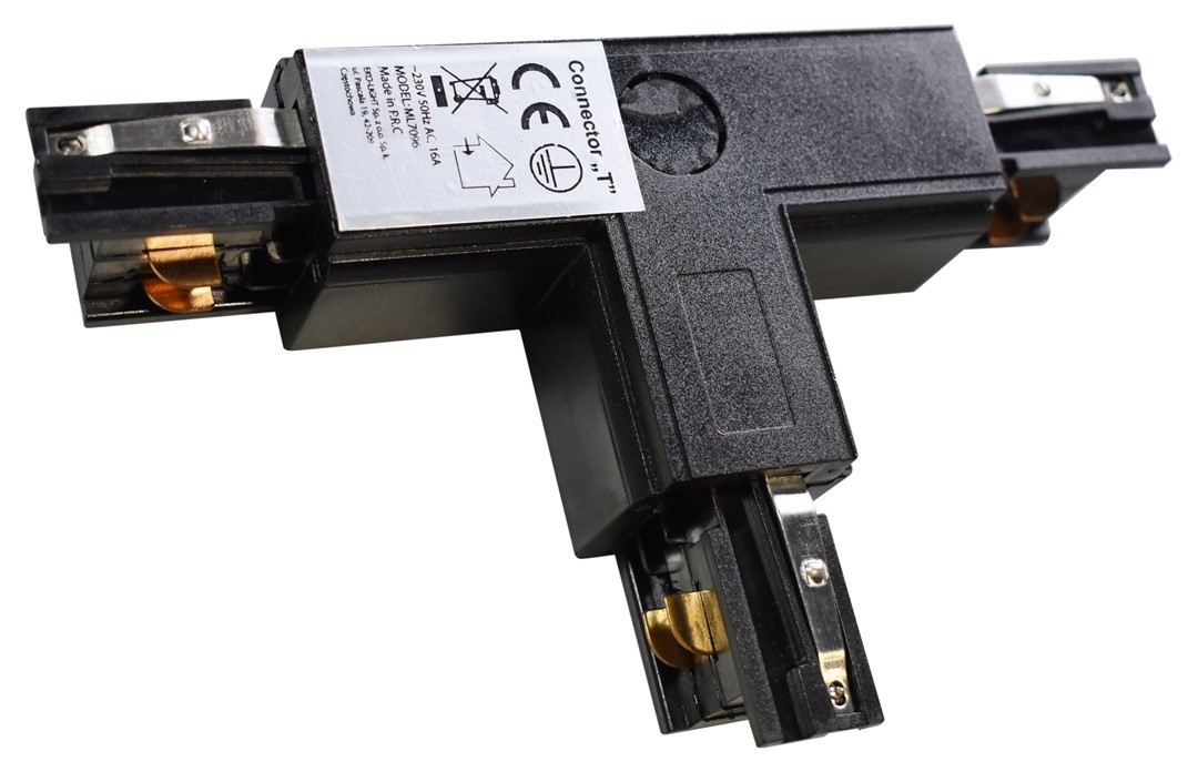 Конектор за лампи в релсова система 3-фазен TRACK черен тип T