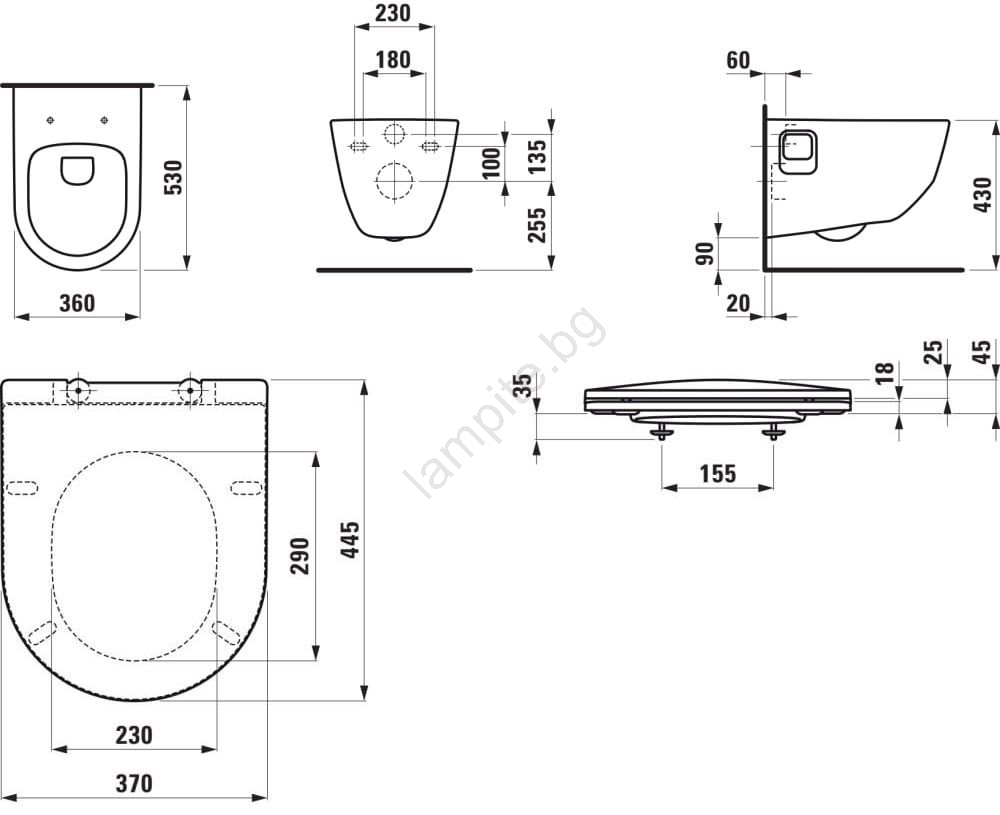 Подвесно WC PRO + тоалетно седало SoftClose PRO + бутон за промиване DUAL LIS + вграден модул + изолационна подложка