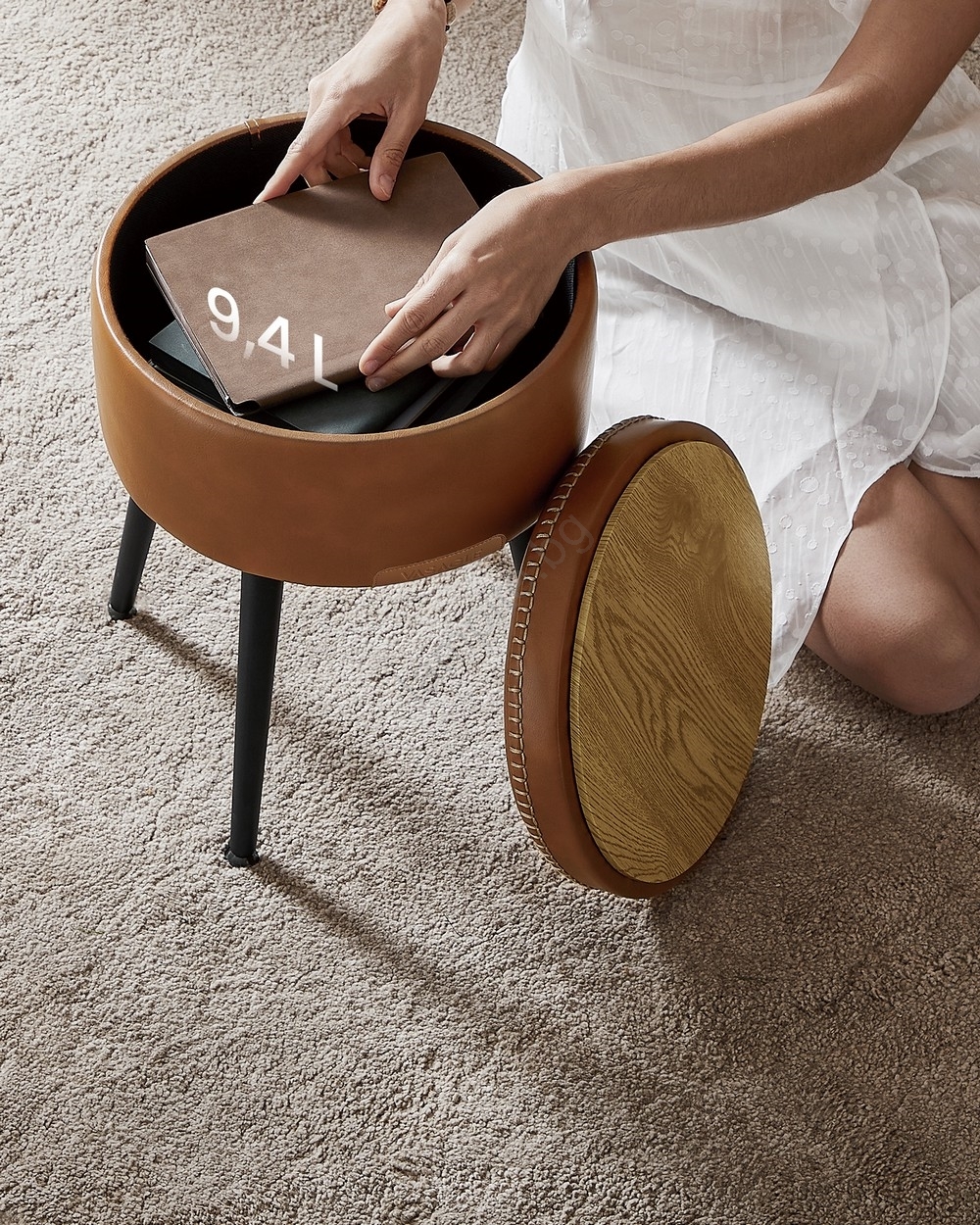 • Вътре в табуретката има място (9,4 l) за прибиране на електроника, книги, одеяла и други дребни вещи.