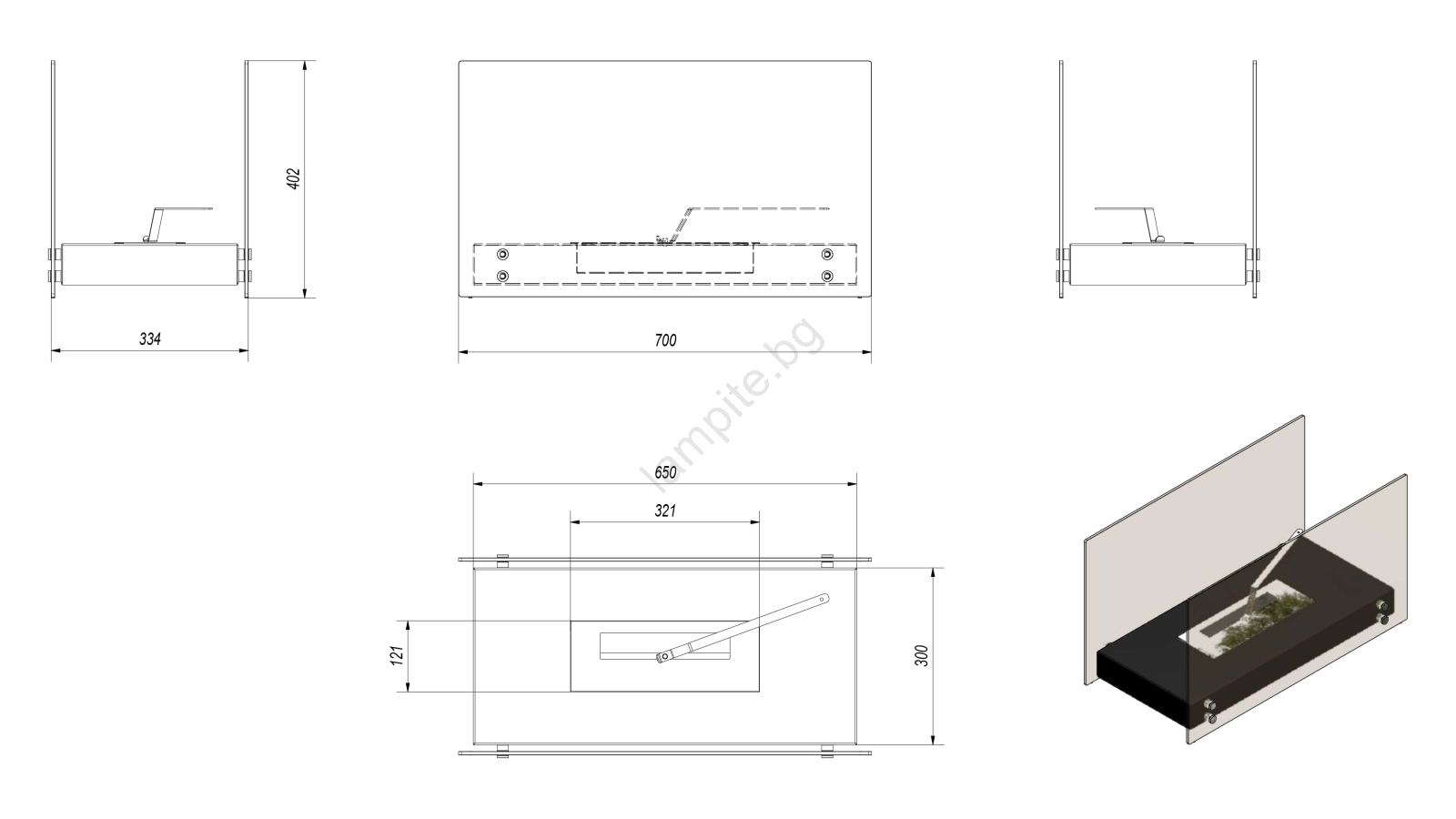 • Размери на камината: 40,2 x 70 x 33,4 см.