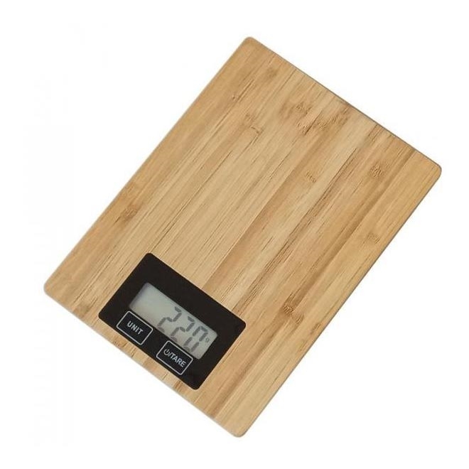 • Кухненска везна, изработена от бамбуков материал.