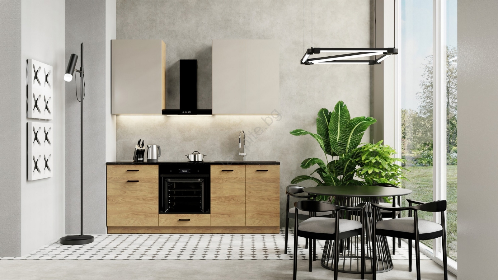 • Разположение на шкафовете е модулно, можете да адаптирате кухнята според собствените си предпочитания.