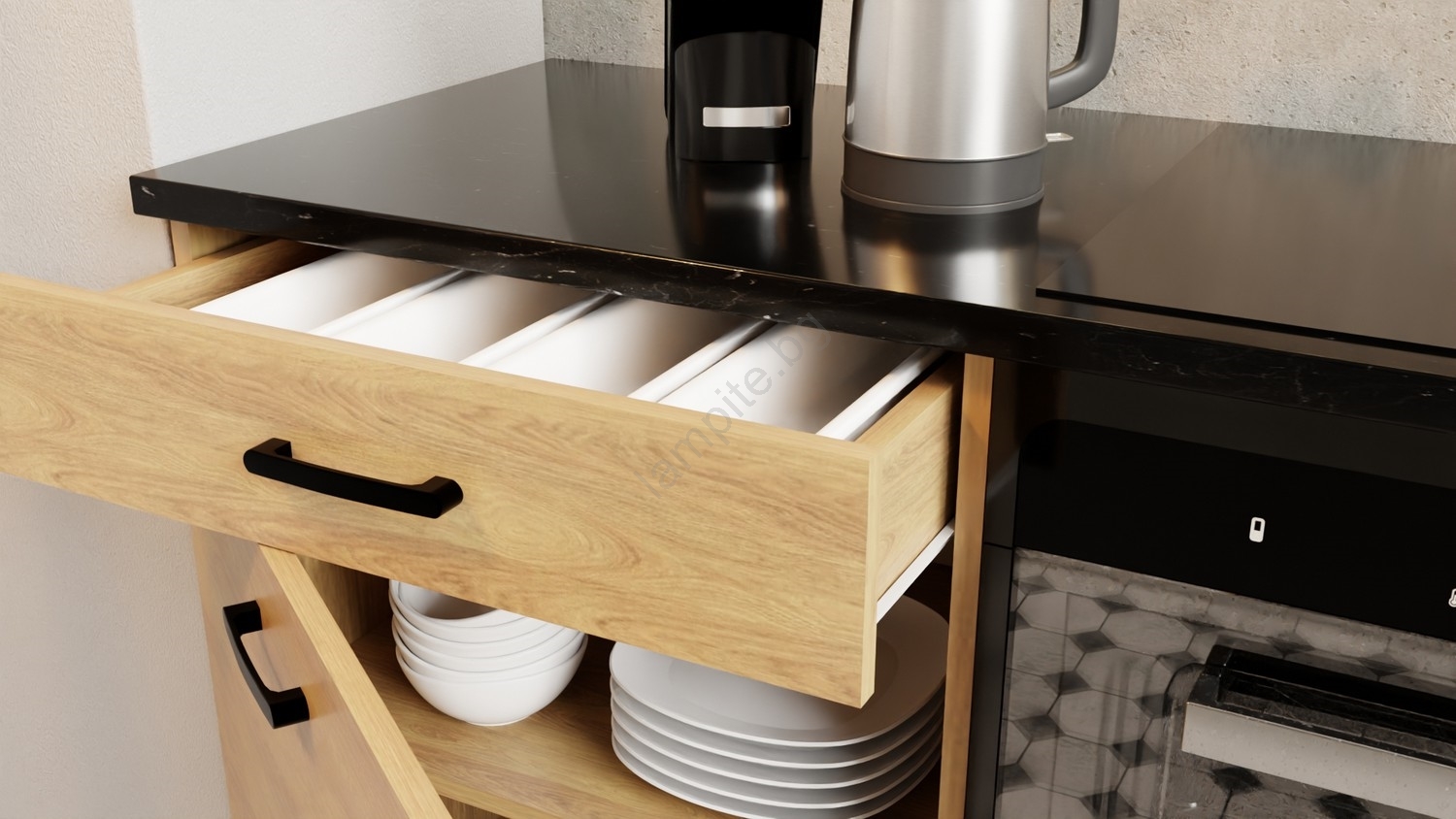 • Практичният кухненски модул ви осигурява просторно, добре организирано място за съхранение.