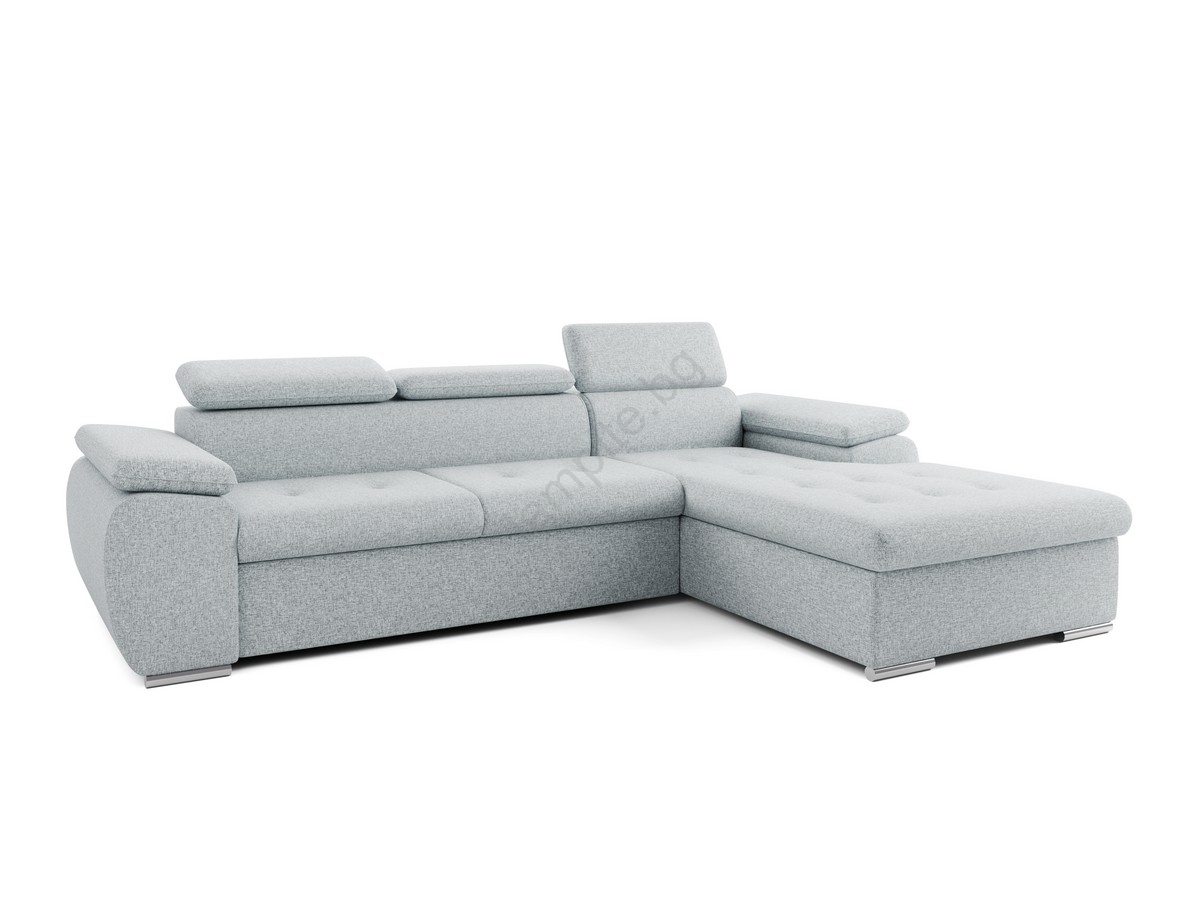 • Разтегателен ъглов диван тип L с място за съхранение PADUA сив десен