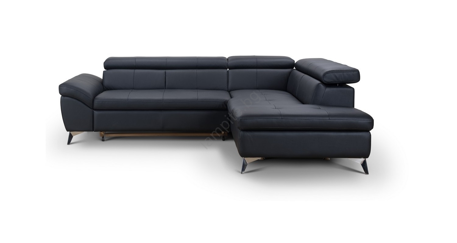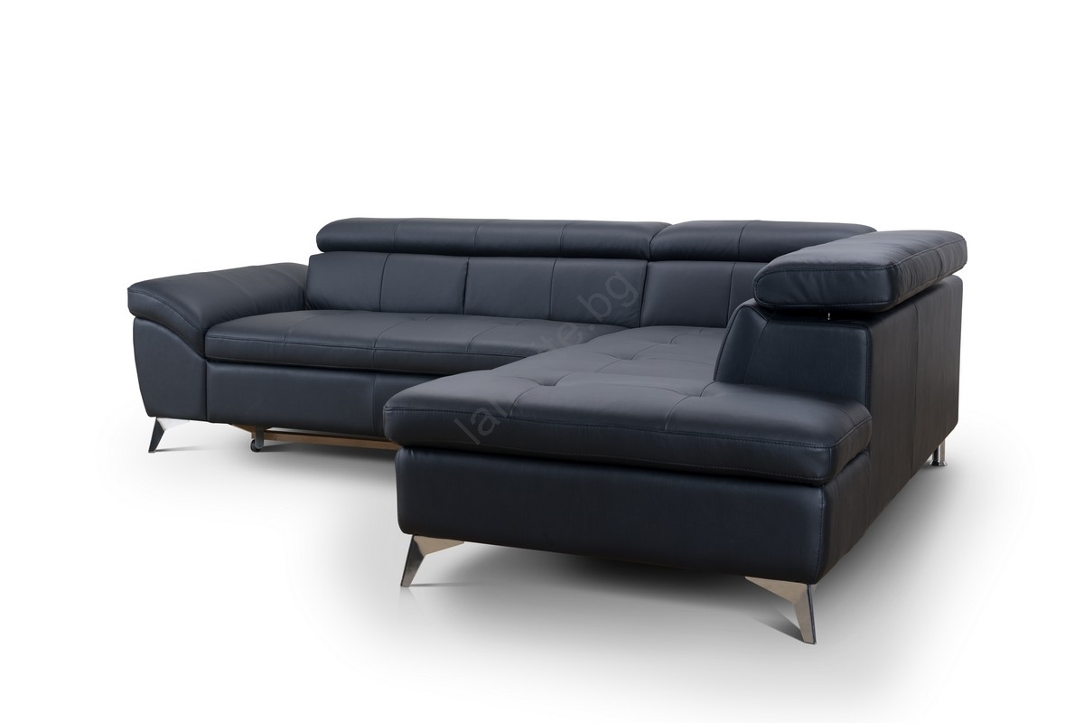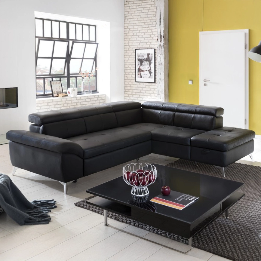 • Разтегателен кожен ъглов диван в L форма SALERNO II, десен, черен
