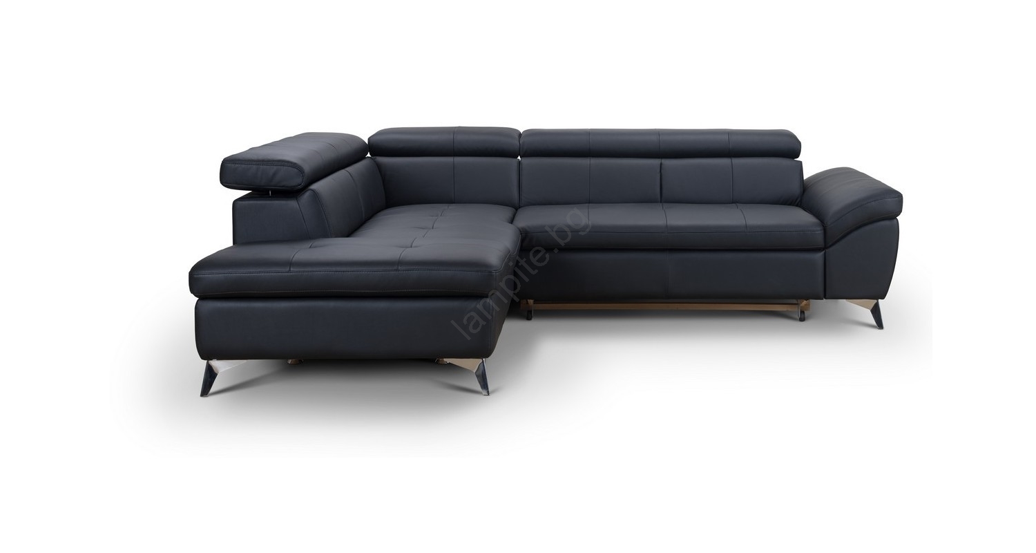 • Разтегателен кожен ъглов диван в L форма SALERNO II ляв, черен