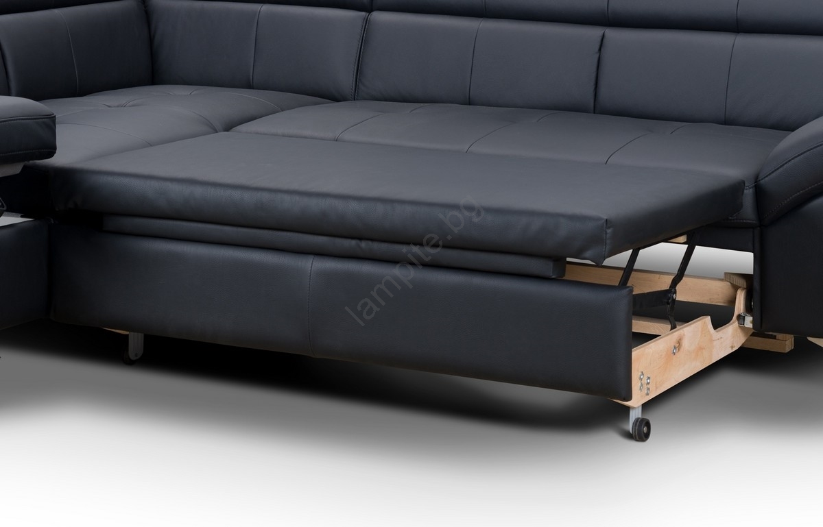 • Разтегателен кожен ъглов диван в L форма SALERNO II, десен, черен