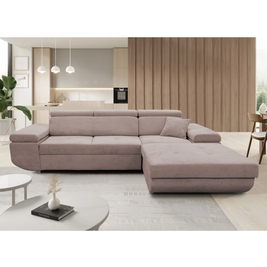 • Разтегателен десен L-образен ъглов диван CASTELO с място за съхранение, бежов