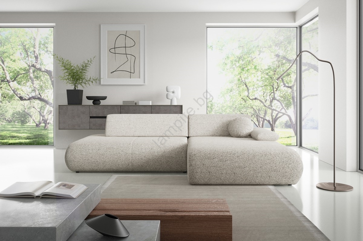 • Ъглов разтегателен диван с ракла, L-образен PRATO, десен, бежов