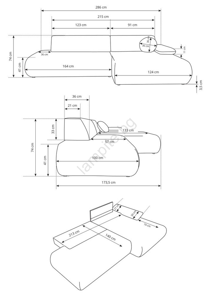 • Елегантните крака (височина 3,5 cm) придават на дивана модерен облик и същевременно осигуряват стабилност и дълъг експлоатационен живот.