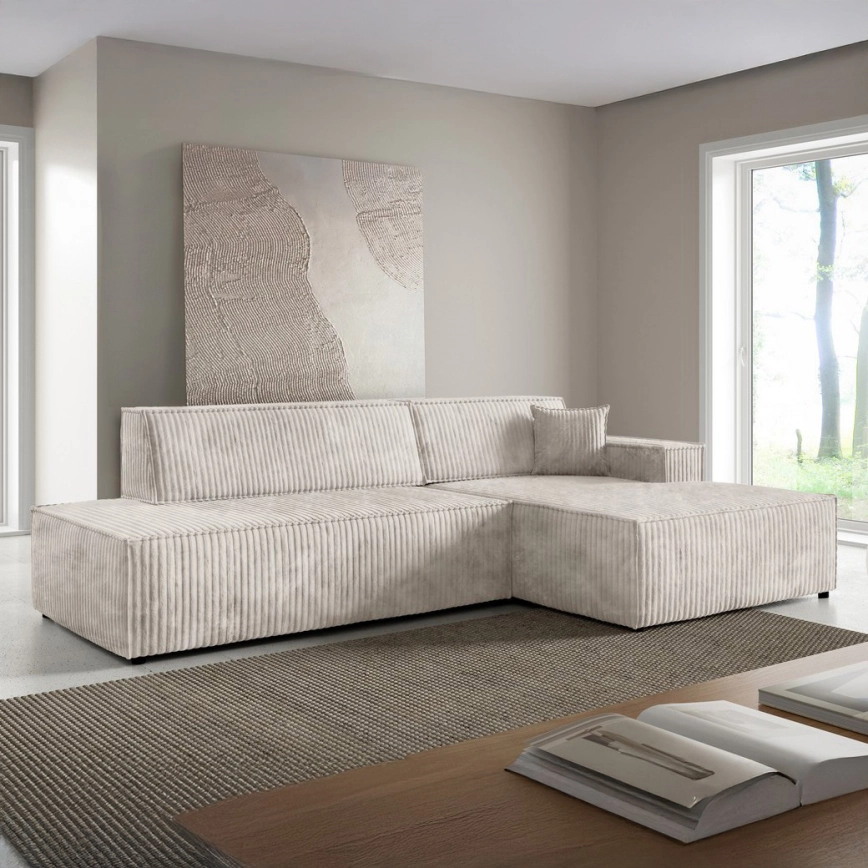 Разтегателен ъглов диван TERAMO с ракла, L-образен, дясна конфигурация, бежов