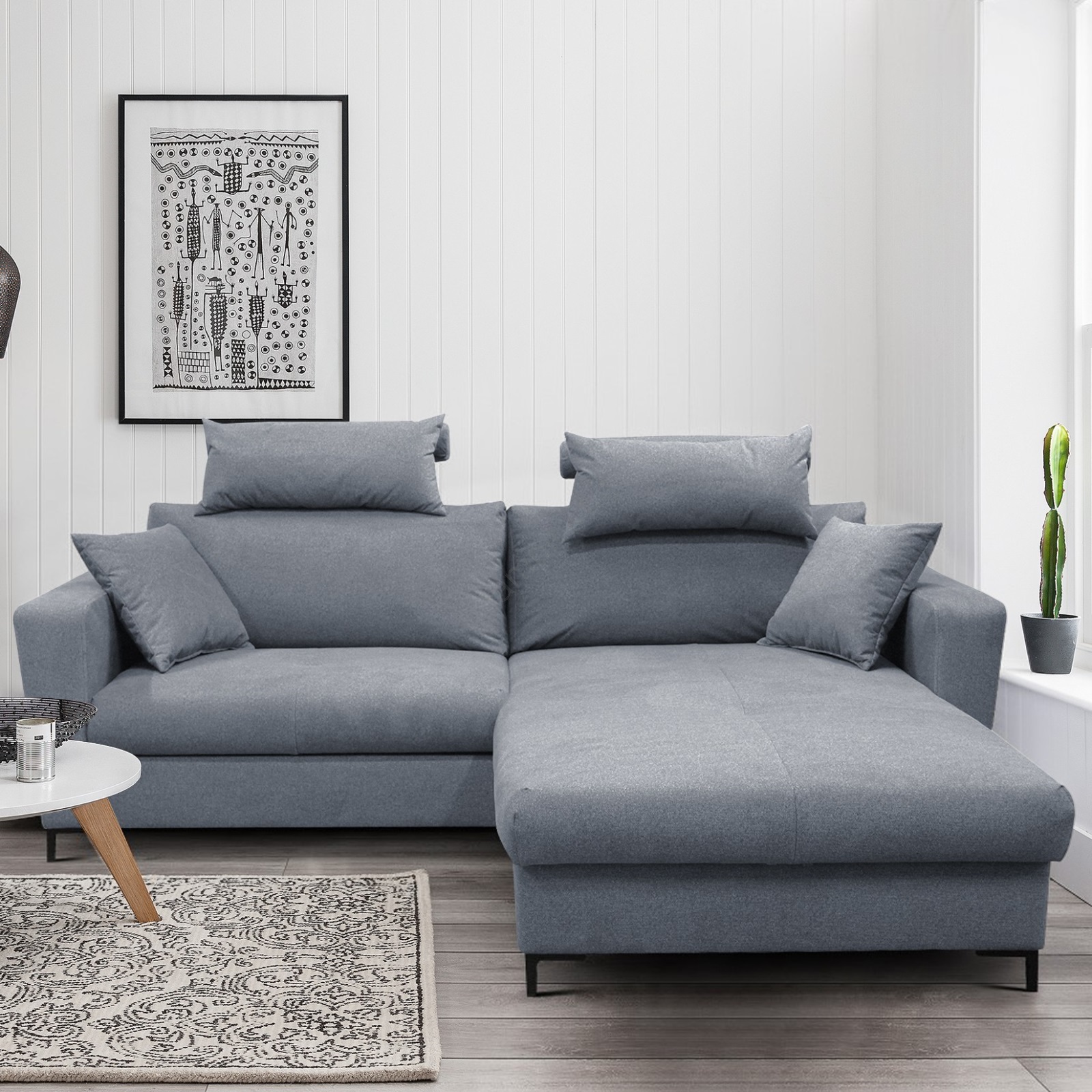 • Разтегаем ъглов диван с място за съхранение в L HORTA ляв сив