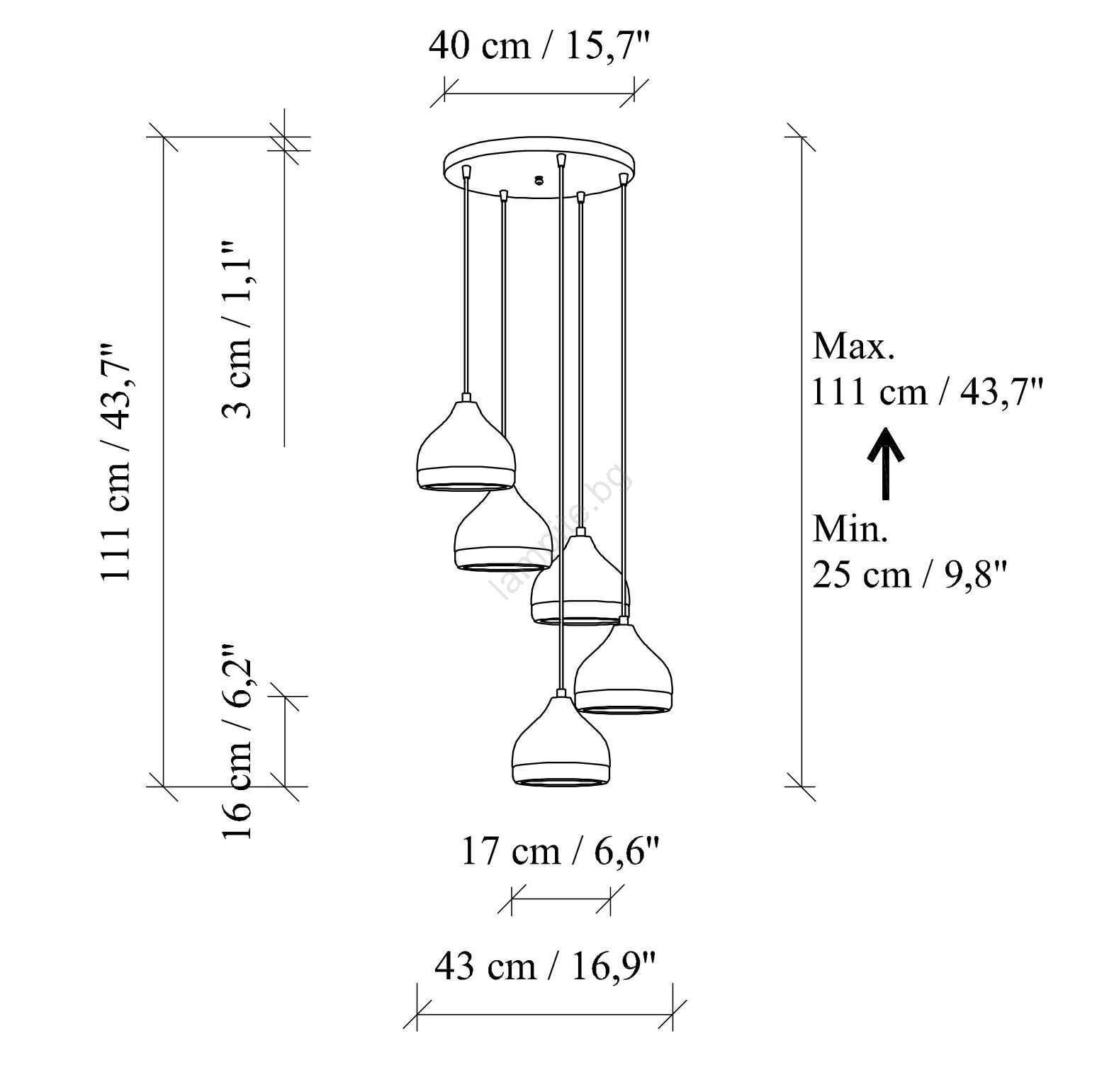 • Полилей на кабел YILDO 5xE27/40W/230V черен/златист