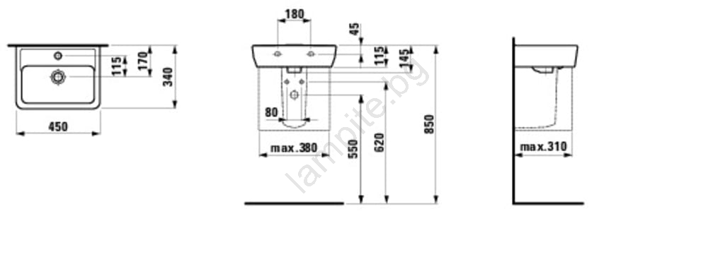 LAUFEN H8119510001041 - Мивка за плот/за окачване PRO 45x34 cm керамика/бяла