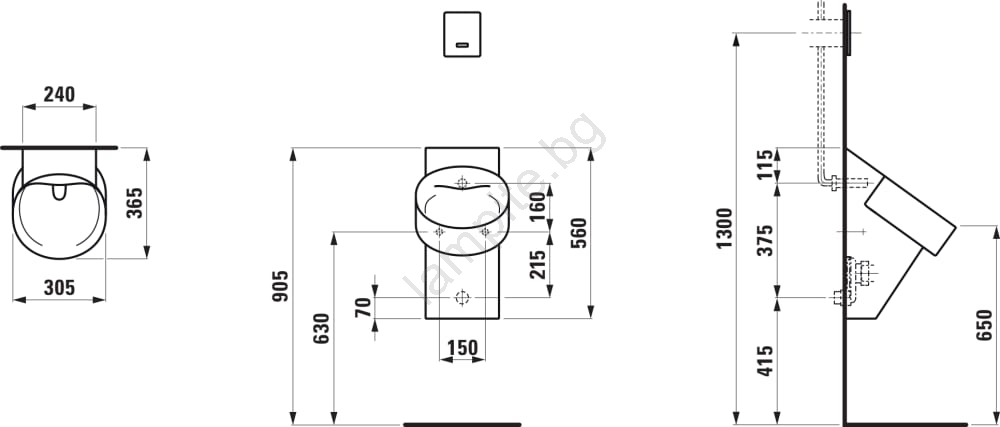 • Писоарът е без ръб, което премахва повърхности, където се задържат замърсявания и бактерии.