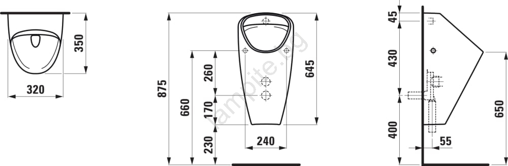 LAUFEN H8410610000001 - Писоар CAPRINO с вътрешен вход, заден отвод, керамика/бял